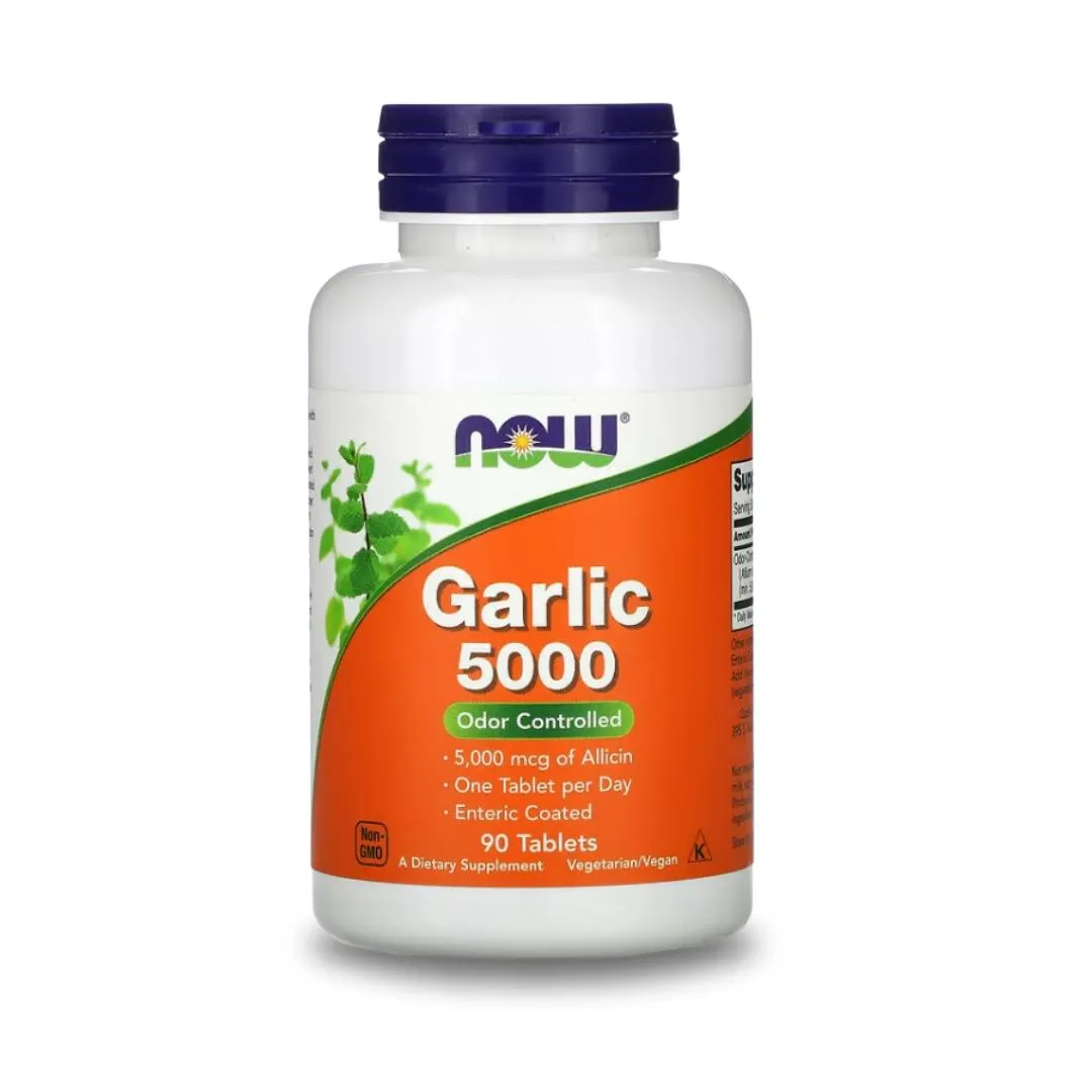 Odor-controlled garlic supplement providing 5,000 mcg of allicin per tablet. Enteric-coated for optimal absorption and reduced odor. Supports immune health, cardiovascular function, and overall wellness.