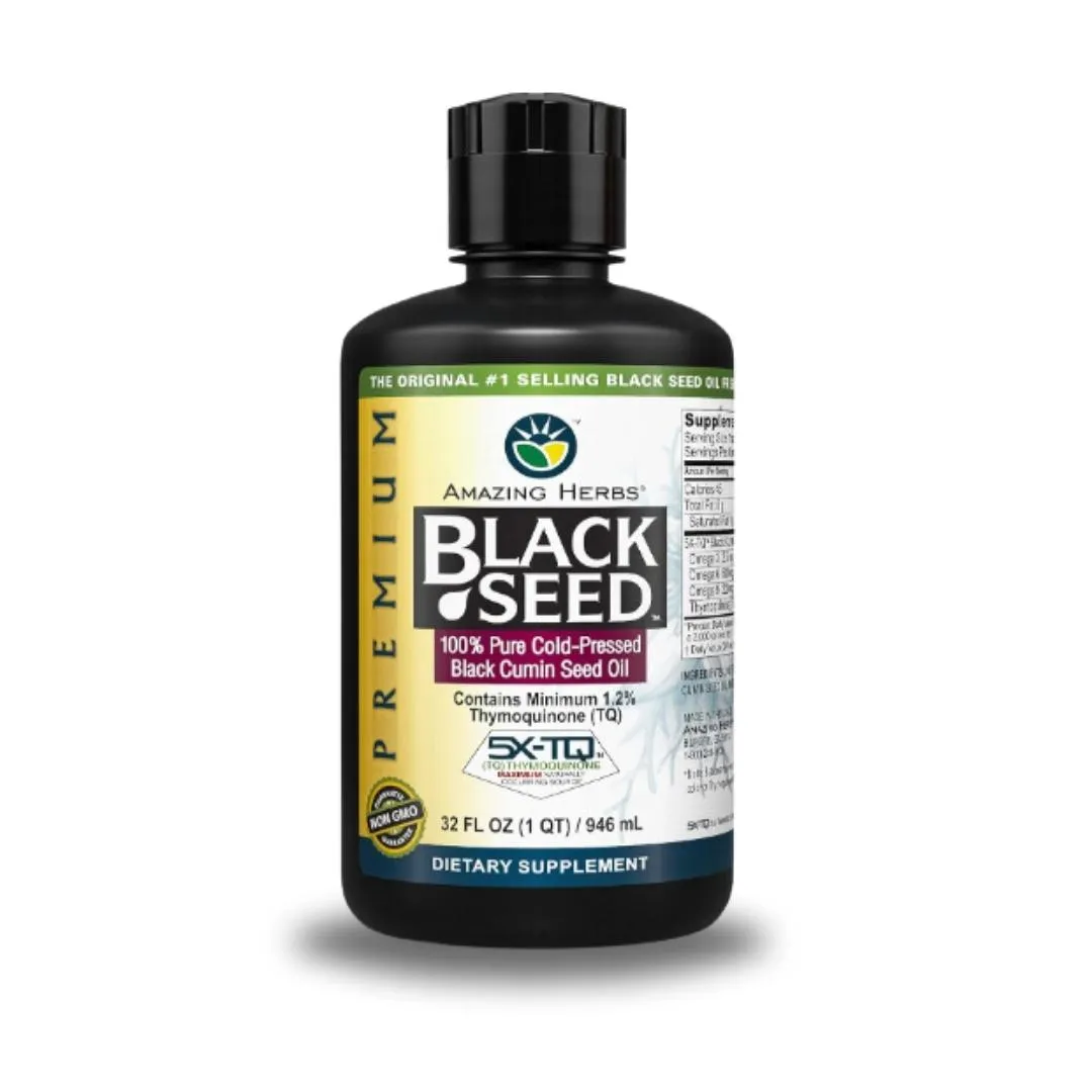 Premium Black Seed Oil with Omega fatty acids and high Thymoquinone content for digestive health, immune support, and more.