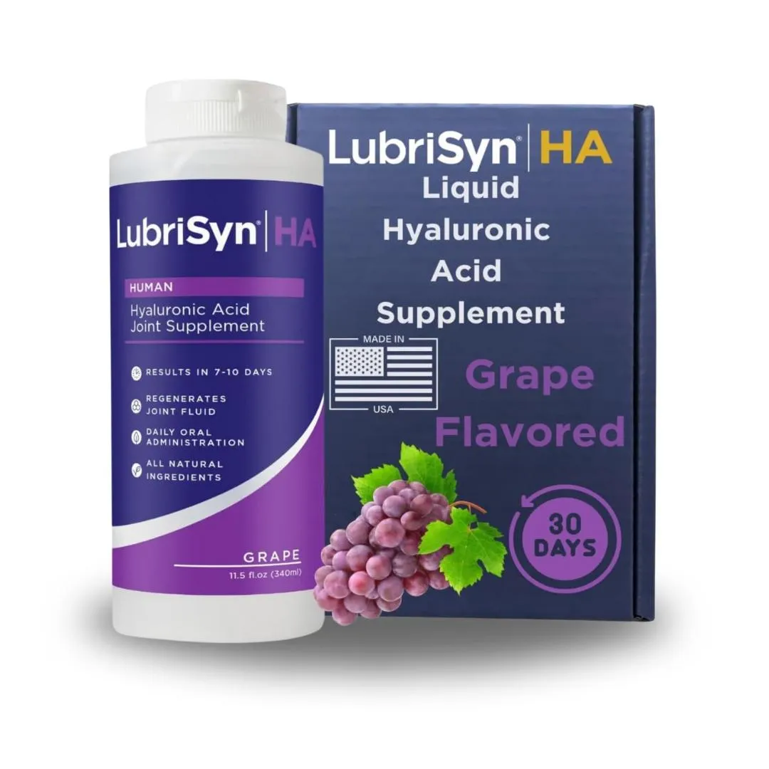 Replenishes hyaluronic acid to support joint health, reduce friction, and inflammation. Each bottle offers 34 servings with 60 mg of HA per 2 teaspoons. 100% vegan, gluten-free, and BPA-free. Available in Grape or Original flavor.