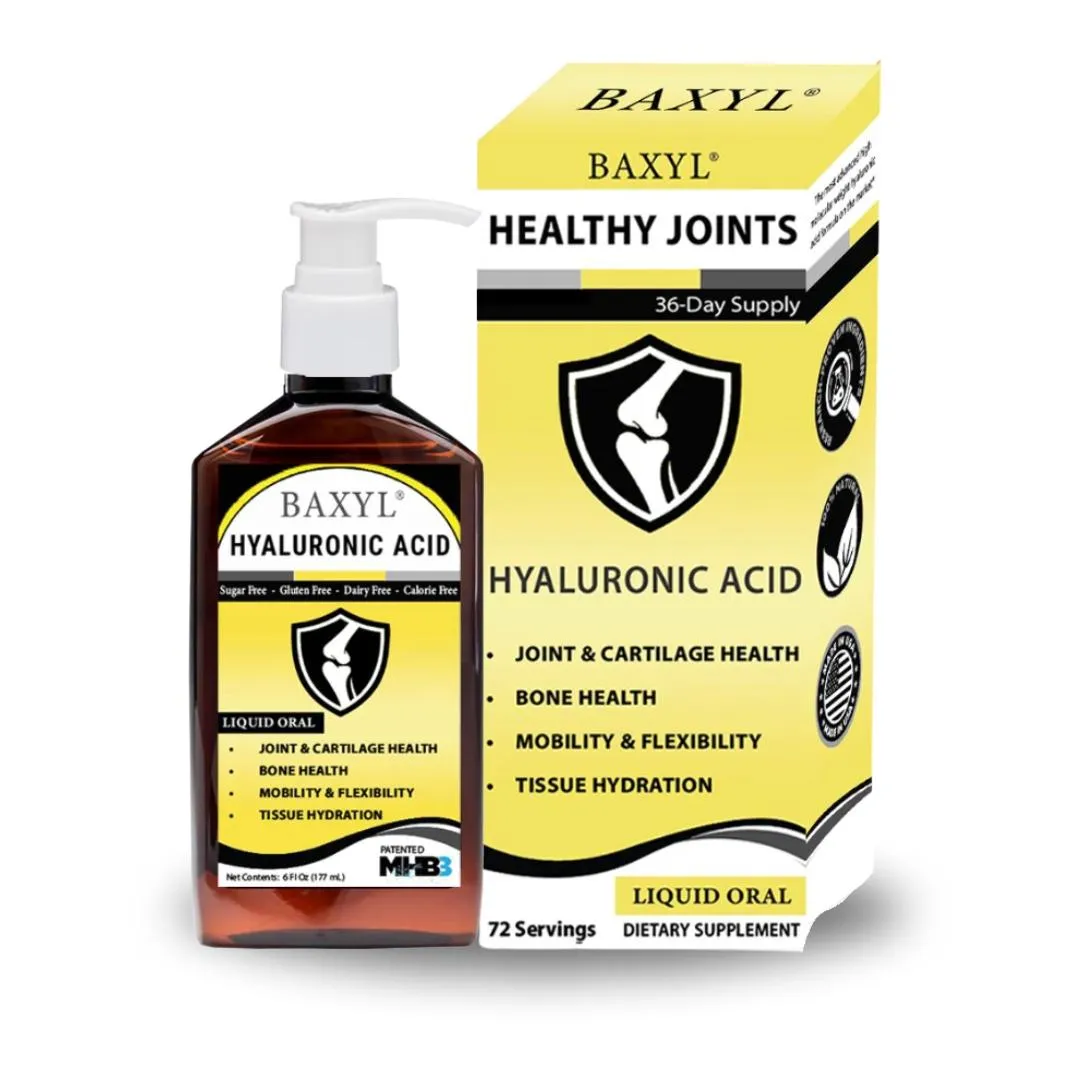 Baxyl Liquid Joint Relief 6 oz: Eases joint discomfort, supports cartilage and bone health, and benefits skin and eye health. Vegan and gluten-free.