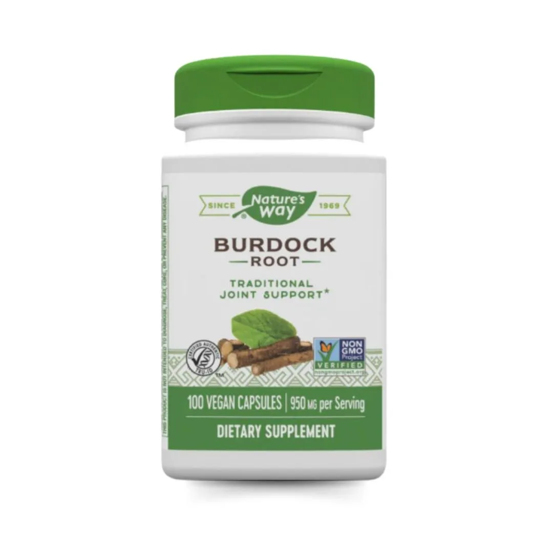 Nature's Way Burdock Root supports skin health and detoxification with 475 mg per serving. It's non-GMO, gluten-free, and free from artificial ingredients.