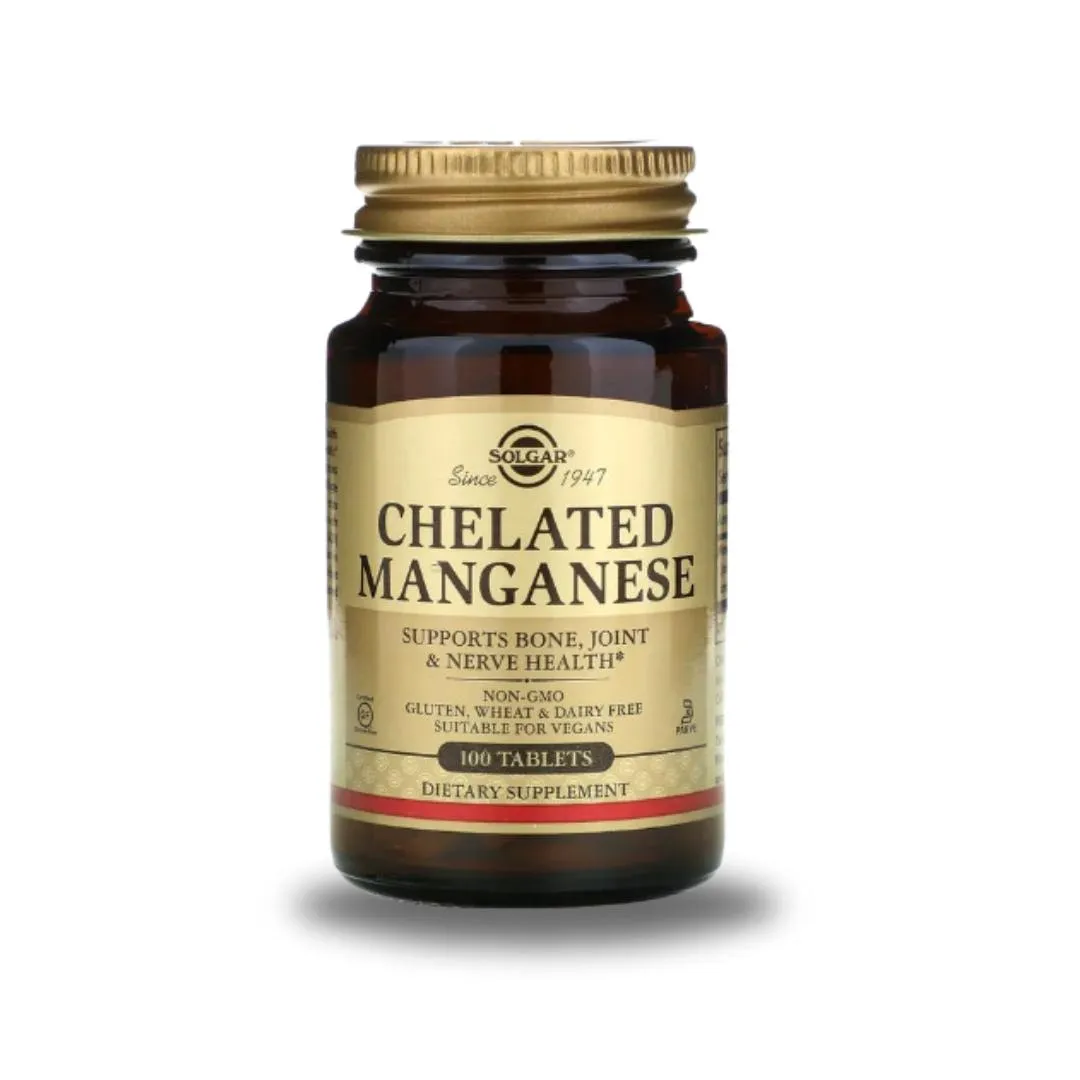 Supports overall health with manganese in bisglycinate form. Take one tablet daily with a meal. Contains bulking agents and anti-caking agent.