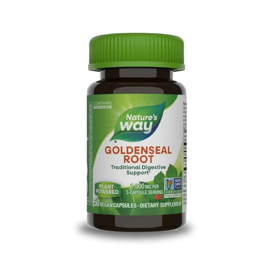 Nature's Way Goldenseal Root offers traditional digestive support with naturally occurring berberine. Gluten-free, vegan, and free from artificial additives, it's formulated to promote wellness.