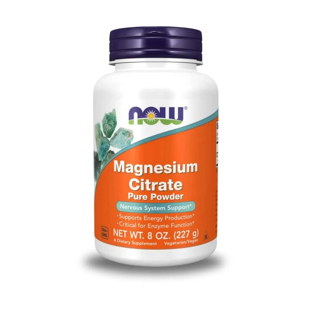 NOW Magnesium Citrate Pure Powder is a mineral that is critical for energy production and metabolism, muscle contraction, nerve impulse transmission, and bone mineralization.