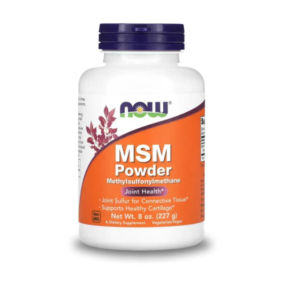 MSM supports joint health, cartilage, and connective tissues. Vegetarian, non-GMO, and sulfur-based for overall joint health.